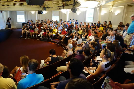 早上10点,一进到会场便感受到来自哈佛大学的魅力,来自世界各地的家长学生汇集于此聆听招生官和哈佛学生的介绍。哈佛大学汇集了全球的精英学生,他们向全校90%的学生提供奖学金,这次夏令营的两位哈佛大学辅导员就分别获得了3万美金及全额奖学金的荣誉。座谈会上,家长踊跃提问,关心自己的孩子怎样才能进入哈佛。招生官表示,除了优秀的成绩,他们更看重的是你个人的魅力,他们希望更多有自己特点的同学进入哈佛大学学习。所以如果你对自己的成绩有信心,但不知道自己是否适合哈佛大学或者其他国外优秀大学的同学,你们可以到学校国际部来咨询并可获得学校直接的介绍手册。(国际部的地址在博文楼404办公室)
