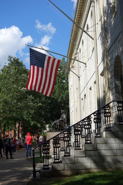下午我们进行了所有来哈佛大学的人必须做的一件事:哈佛大学导览。但是我们同学了解到了更多关于哈佛大学的小秘密,这可是一般游客不会知道的喔!你也想知道这些秘密吗?我们先把问题留在这里,知道答案的同学同样的可以到国际部来领取小奖品哟!问题:下图里的雕像是为了纪念哪位名人?
