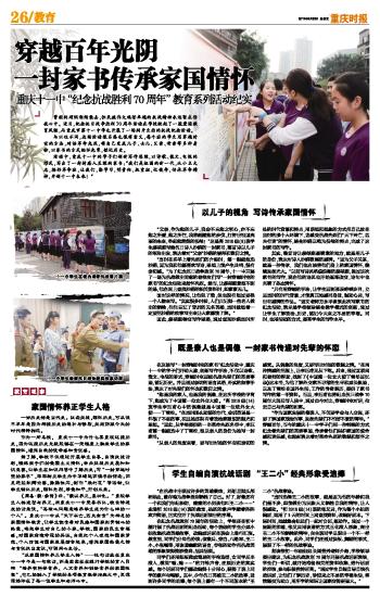 在这场写“一封穿越时空的家书”纪念活动中,重庆十一中的学子们开动大脑,创新写作手法,不仅以诗歌、散文、电报的形式,穿越时空回顾抗战先辈们的英勇事迹,铭记历史。并且通过亲切的语言风格,朴实的叙事手法,表达了对先辈们的怀念和敬仰之情。