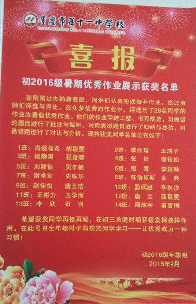 ——初2016级4班优生榜上有名