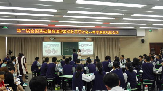 在大家的掌声中,第二届全国基础教育课程教学改革研讨会中学组课堂教学观摩活动顺利结束。活动结束后,与会代表迟迟不愿离去,纷纷向几位专家请教自己在实际教学中所遇到的问题和困惑。几位专家耐心解答,气氛十分热烈。