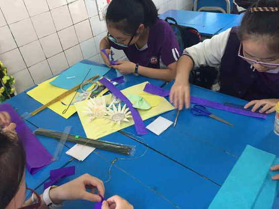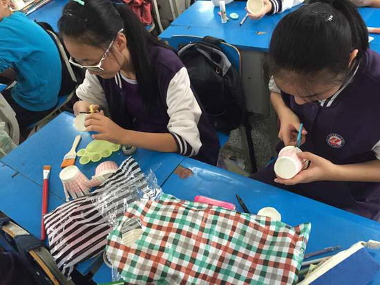 平时看起来并没有多大用处的纸杯、用过的签字笔芯、一张张废纸,在同学们的一双双巧手下犹如凤凰涅磐般重生。在授课教师余飞扬老师的带领下,同学们做出了可爱的向日葵、小巧玲珑的纸灯笼、还有令人食指大动的水果拼盘……此外,在以后的课程中,听老师介绍还将会有织毛巾、做蝴蝶发卡等内容。