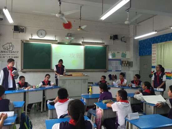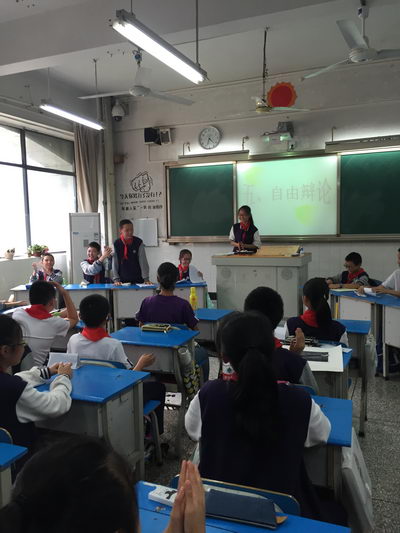 在双方四辩进行总结陈词之后,主持人专门设置了“观众”提问环节,同学们可以任意挑选双方辩手进行提问,双方辩手都对“观众”的提问进行了耐心地解释,全班同学既有学习又有参与,让大家受益匪浅。