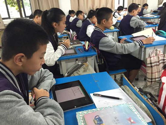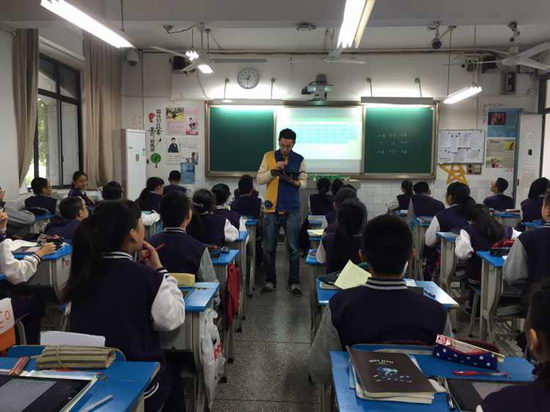 2015年10月26日星期一,“未来课堂”在初2018级5班正式启动。下午,来自总部的技术人员为初2018级5班的全体同学安装了系统。在晚自习上,技术人员向五班学生详细地介绍了使用系统的流程、方法及它的优越性。