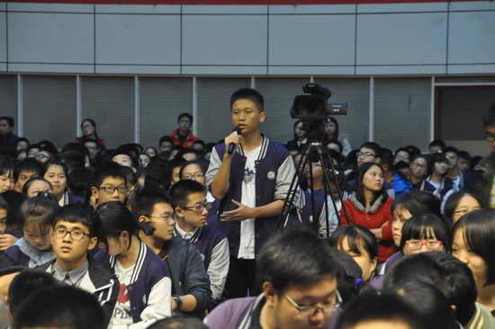 接着,刘庆邦先生提出文学作品和生命有着紧密的关系,任何文学作品都是生命之歌、生命之舞、生命之诗。要写出好的作品必须要有很好的生命质量、力量和分量。并对此作了具体的诠释:很好的生命质量需要我们具备善良的天性、高贵的心灵、高尚的道德、悲悯的情怀、坚强的意志。认为文学创作的主体必须是一个善良的人。要具备恻隐之心,有大悲大慈的思想,有悲痛感,人才会变得善良和慈祥。一个人应该把生命的价值看得高于一切,把生命当作目的而不是手段。并提到自己是一个意志力坚定的人,每年大年初一坚持早起写作,由“一日之计在于晨,一年之计在于春”联想到“一生之计在于早”。并提醒同学们一定要注重意志力的培养,坚强的意志力是成为一个优秀的人的重要保证。随后又指出生命的力量主要体现在一个人思想的力量,提出鲁迅和史铁生是中国最有思想力量的作家,鲁迅对社会的思索、史铁生对生命的追问都值得青少年学习。接着,谈到生命的分量与所受教育的总量有关,通过举司马迁、沈从文和莫言的例子论证了生命分量的真正含义,认为莫言获得诺贝尔文学奖是中国文学史上的里程碑。