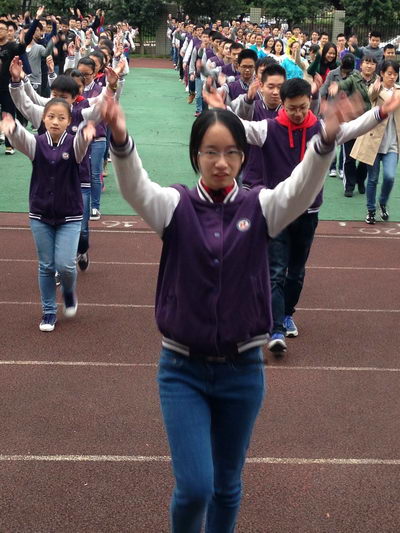 2015年11月13日,CBD高三校区举行了课间小苹果大赛,在经过赛前接近一月的训练后,全年级的学生都是信心满满,心态积极,抱着友谊第一,比赛第二的心态参加比赛。