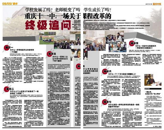 终于,重庆十一中秉承此前数次课改的探索精神和成果,以大阅读为突破口,带动了一场全员全程的课程改革,使之成为在重庆乃至全国都称道的课改典范。