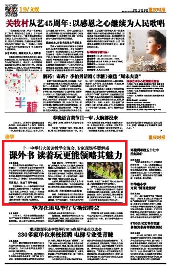 那学生又该以怎样的心态去阅读课外书?“不管报刊杂志还是小说,我都用打游戏过关的心态去阅读,由浅入深,越读越起劲,还作了读书笔记,摘取精彩段落,慢慢享受到阅读的乐趣。”十一中初一(5)班学生张浩(化名)告诉记者。