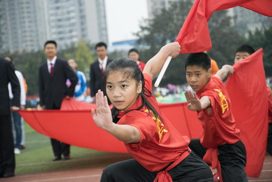2015年11月19日上午8点,重庆市第十一中学校第十一届体育节在体育场隆重开幕。