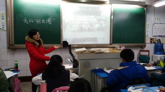 班会课开始了,一向不爱用投影仪的刘老师这次竟然打开了它,同学们都满怀好奇心,想知道个“所以然”。刘老师首先为我们用大屏幕展现了“我的朋友圈”,她为我们展示了上个世纪八十年代的中学同学照片、九十年代的大学同学照片、2014级的全体教师照片。从照片中我们看到刘老师从一位青涩稚气的少女成长到一位知性成熟的女教师,这三十年来的照片无一不是在告诉同学们刘老师的亲身经历,属于刘老师逐渐扩大的朋友圈。当刘老师讲到她的同学们朋友们现在有些是教授,有些是校长,还有电视台主持人,和更多的优秀教师,他们有的在成都,有的在上海,还有的在深圳、北京时,刘老师脸上洋溢着自豪。为我们分享完毕后,刘老师便讲起了这次班会的主题——如何建造自己的朋友圈。