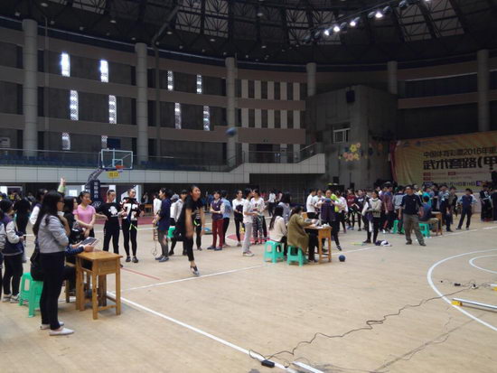 2016年3月7日,重庆十一中体育馆里学生士气昂扬,有的在投掷实心球,有的在跳远,有的在跳绳,犹如在一片竞技场上,原来这是初三年级全体师生正在进行中招体育考试模拟测试。
