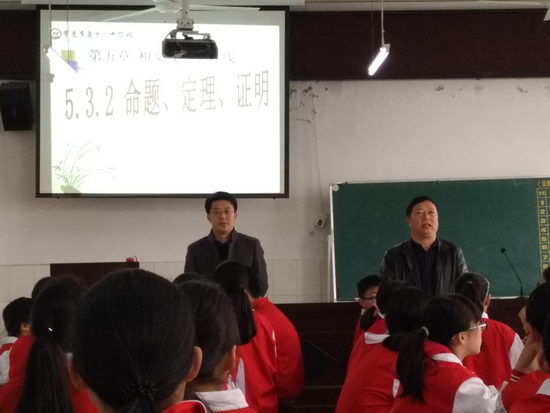 马果老师于当日上午与丰都中学的王波老师一起为丰都县广大国培学员献上两节非常精彩的课,课题为《命题、定理、证明》。这次同课异构获得了全体参训学员和专家的一致好评。