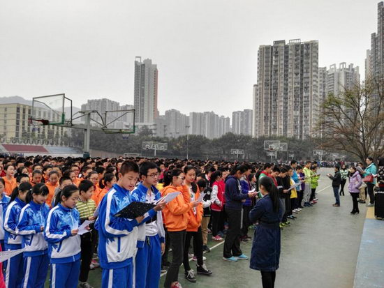 今天是全校的一次排练,全校同学齐心协力,完成这一撼人心魄的诗词。