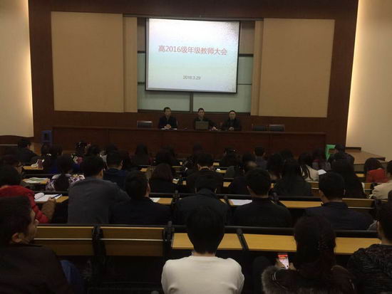 为了进一步明确目标,提高高考备考复习质量,3月29日晚6点,高三年级在CBD科技报告厅召开三月月考成绩分析会。会议由杨红组长主持,潘文荣主任发表重要讲话。潘主任借助大数据分析系统,科学、全面、细致分析了班级团队、备课组团队、优生团队、重点及重点踩线生团队的发展状况,并就本次月考文理科各批次、名次段入围分数、学科平均分、上线人数等方面进行了横向、纵向的数据分析,与此同时,根据本次考试,就各班高考教学目标及后阶段工作提出了具体要求:一是分析学生的薄弱点,针对性复习备考;二是加强备课组教学研究,努力制定周密的复习教学计划,科学分配常规课时和集中训练课时;三是因材施教,加强学生迎考心理辅导;四是加强规范答题意识及技巧的指导。此次会议,使高三全体教师明确了备考方向,增强了信心。相信本届高三一定会凭借务实求真的实干作风、精诚团结的团队精神,在2016年高考中再创佳绩。