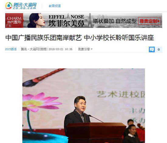 “本次活动的召开其实是代表南岸区部分学习将在未来开展民族音乐教育,音乐会并不是浅尝辄止的单纯表演。”南岸区教委副主任唐文介绍,目前南岸区教委已与中国广播民族乐团展开合作,双方将共同努力,将在重庆十一中、弹子石小学两所学校建立起南岸区中小学首批民族音乐艺术团。