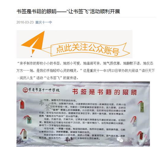 [重庆十一中 微信] 书签是书籍的眼睛——“让书签飞”活动顺利开展