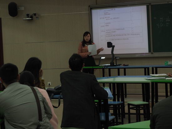 经过精心设计,陈老师在分式的乘除法教学中,思路清晰,训练扎实有效,并时刻关注每个学生对知识的理解与掌握情况。在教学设计上,充分体现了我校“先学后教,以学定教”的教学理念。陈老师清晰的语言表达、恰到好处的总结提炼和学生积极的思考、踊跃的表现,让与会者享受了愉快的四十分钟。