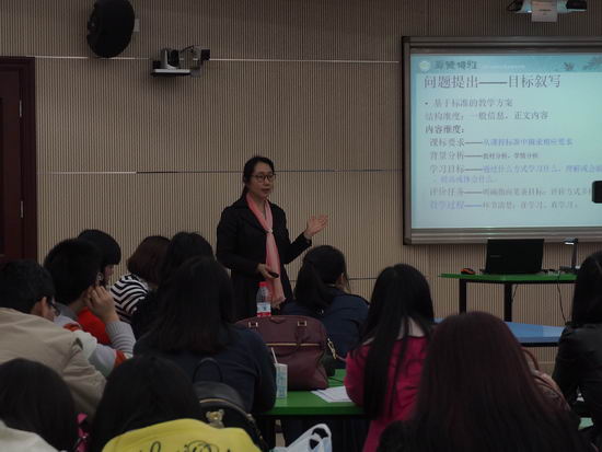 最后,区教研员蒋老师给大家做了一个精彩的讲座,主题是《学会数学表达——融入深度学习与目标叙写》,分别从课堂观察、深度学习、目标叙写、数学学科核心素养等方面为我们阐述了如何学会数学的表达,并指出了我们教研活动的目的是真正思考教学活动中的问题,相互学习,共同成长,同时也为我们指明了今后努力的方向和工作的重点。