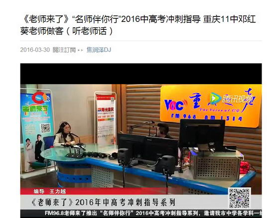 [重庆之声] 《老师来了》“名师伴你行”2016中高考冲刺指导
