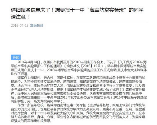 [掌尚教育] 想要报十一中“海军航空实验班”的同学请注意!