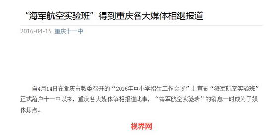 [重庆十一中 微信] “海军航空实验班”得到重庆各大媒体相继报道