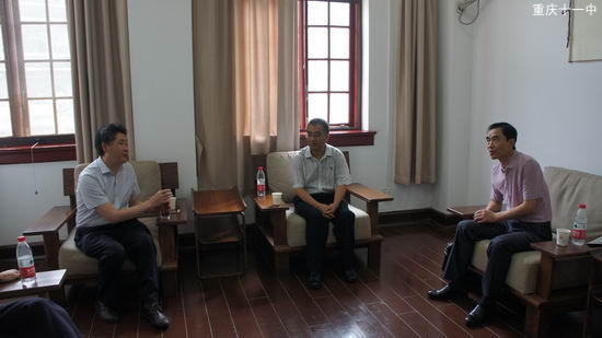 钟进友校长同市教委政策法规处副处长郭冠仁、南岸区政府教育督导室副主任赵波交流