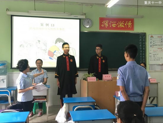 2016年8月29日下午,全国青少年优秀普法辅导员、重庆市审判业务标兵、重庆市首届十大法治人物,被称为“法官妈妈”的南岸区人民法院周俐莎法官,在我校高2017级2班开展了系列法治教育活动。
