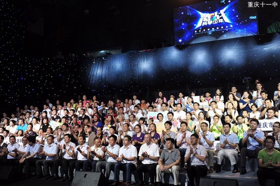 重庆十一中欧校长亲自莅临现场为十一中学子加油,十一中师生代表为十一中学子助威。(二排右四为欧校长)