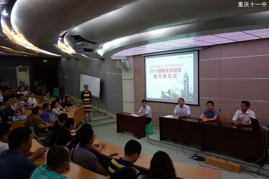8月30日,重庆十一中高2019级国际实验班开班仪式在阶梯教室成功举行。国际班全部71位学生和近130多位家长以及全体任课教师齐坐一堂,气氛热烈。分管国际班工作的欧校长、办公室李建兵主任等学校领导出现了开班典礼。