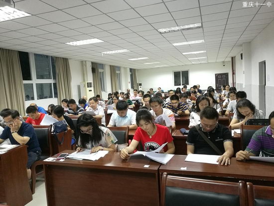 9月12日,晚7点整,重庆十一中CBD校区,夜幕已然降临,高三学子们早已端坐于教室安静自习,回顾整理着白天的所学知识。工作了一天的高三全体教师此时也齐聚CBD校区一楼考务办公室,参加高2017级新学期首次年级会议,组织本次会议的年级领导有艾林主任、马凯组长、刘世军组长以及童国福老师,还有百忙之中赶来的学校领导李顺林校长。