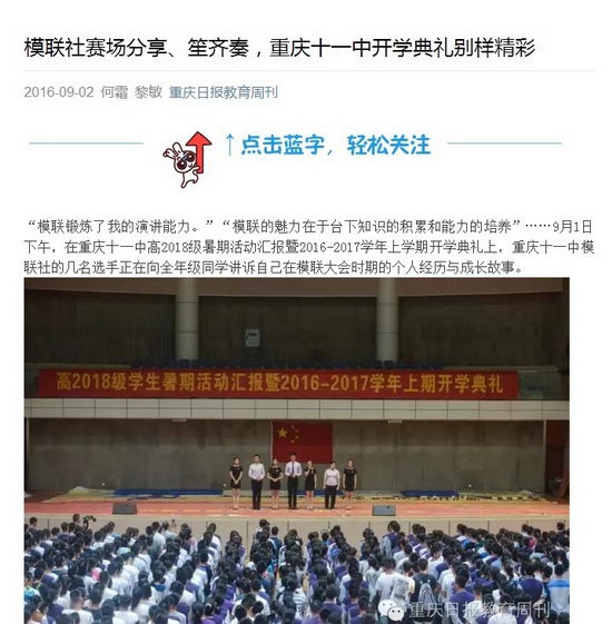 模联社赛场分享、笙齐奏,重庆十一中开学典礼别样精彩