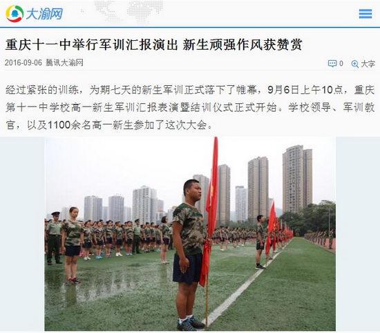 重庆十一中举行军训汇报演出 新生顽强作风获赞赏