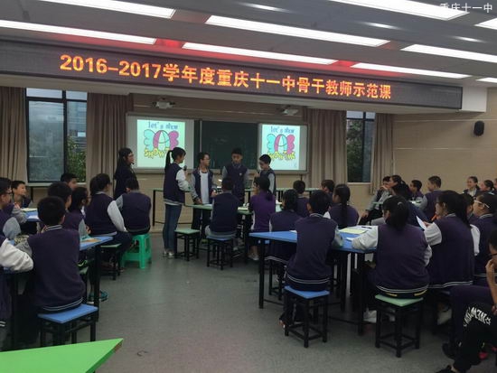 2016年10月13日,重庆十一中骨干教师英语组示范课在多媒体教室(一)拉开帷幕。市、区教研员,全体英语组成员以及其它学校的交流学习老师参加了本次活动。此次,骨干教师刘文春老师代表初二英语组给大家呈现了一堂集教师个人魅力,教学环节张弛有度,学生学习高效愉快于一体的“爱与不爱”之课。