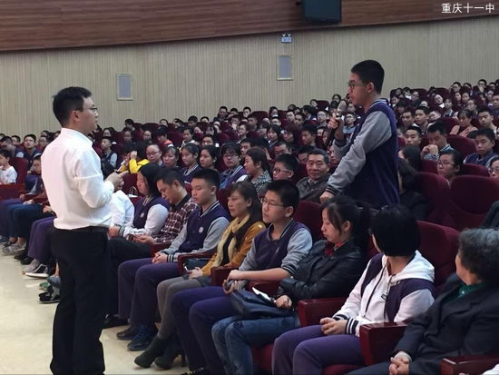 10月17日下午,初2017级全体师生和一百多位家长在文益堂举行了以“塑造优秀 感恩父母 Yes,  I can”的主题活动。此次活动作为初三年级的动员大会,目的是让学生感受并理解父母、老师的付出和辛劳,从而树立自己的责任意识,塑造一个优秀、懂得感恩的自己。