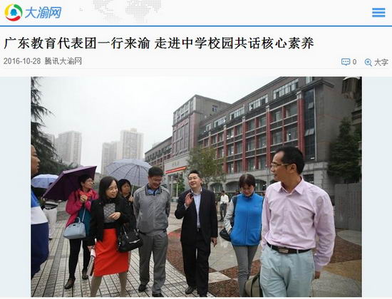 昨(27)日下午,广东省百千万人才培养工程“教育家”和顺德区卓越中学校长培训班的学员们走进了重庆市第十一中学校参观交流。座谈会上,重庆十一中校长钟进友围绕“核心素养与高考改革”这一主题做了详细报告。