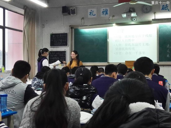 此次汇报课,充分体现了实习老师在我校实习两个月取得的显著成果。蒋苏雅老师以一段优美的排比,引入对《汉家寨》的学习。整个课堂都显得井井有条,问题的设置也是环环相扣,步步深入。