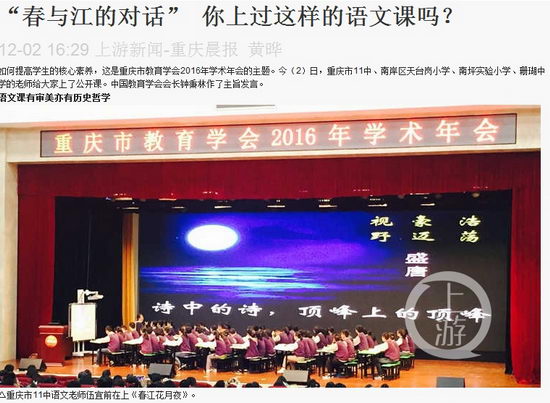 重庆市11中语文老师伍宜前给高二年级学生上了一堂不一样的《春江花月夜》,这节诗歌课上,孩子们提升了审美,获得了诗歌发展的历史知识,还引发了一些人的哲学思考。