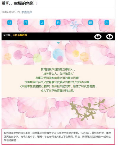 如何提高学生的核心素养,这是重庆市教育学会2016年学术年会的主题。12月2日,重庆市11中、南岸区天台岗小学、南坪实验小学、珊瑚中学的老师给大家上了公开课。现在,请跟随我们的镜头一起前往现场打探吧!