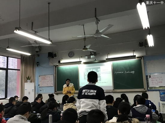 自新改在全国推行以来,重庆市第十一中学校着力于调动学生学习的内驱力,立足于当前能考好,放眼于未来可持续,努力探索教学新模式,不断改进创新,规范集体备课、听课及评课制度,给学生减负担,向课堂要效率,借力学校多年精心打造的导学案,以全校或年级同课异构、翻转课堂等活动为驱动,深入推进以“先学后教,以学定教”为理念的翻转课堂。为响应由学校推动,高2019级年级主办的以“先学后教,以学定教”为模式教学示范课活动,2017年2月23日第一节课,“摩登”的高2019级英语备课组特面向全校推出了一堂由“摩登”的曹雪娥老师以“摩登的”Technology Information为主题的“摩登”翻转英语课堂,在学生与老师中掀起了一阵“摩登”风潮!