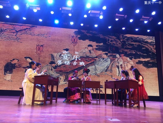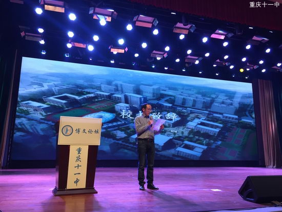 2017年2月26日晚七点,重庆十一中文益堂八百多座位座无虚席,高2018级七班学生给我们带来了一场盛大而华丽的文化与思想盛宴。到场的有李顺林副校长,教务处许刚强副主任、毛阿英副主任,高二年级年级黄伟组长和徐顺光组长以及学校部分老师。