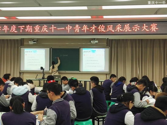2017年3月13日星期一, 2016-2017学年度下期重庆第十一中学青年才俊风采展示大赛拉开了序幕。高2018级化学组杨丰瑜老师在修德楼多媒体教室一展示了一堂“先学后教,以学定教”模式下的《卤代烃》的公开课。