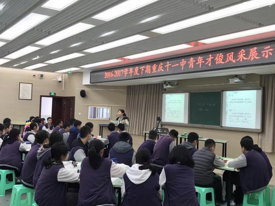 2017年3月14日,重庆十一中青年才俊风采展示大赛语文组的比拼拉开了帷幕。初2017级青年教师张雪静为学生带了作文写作指导课。初中语文备课组所有成员聆听学习。