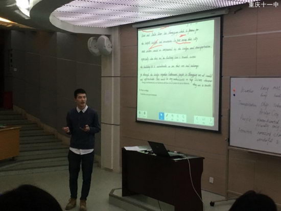 2017316日上午,在重庆十一中青年才俊教师公开课大赛高中英语组的比赛在体育馆阶梯教室进行,田地老师的公开课安排在第三节。