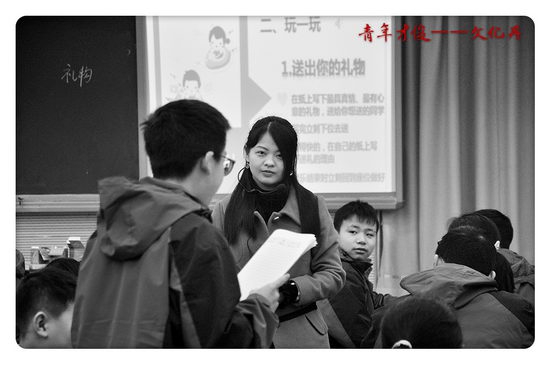 一开场,文老师用一句广告语“药材好,药才好”引出本节课的主题“选材”,在出示了题目《礼物》后,文老师采取问答的方式,迅速将学生带进课堂,并使学生的思维不断拓展,引出选材的第一个重点“真”。接着,为了使同学们能够更加深入体会选材的第二个重点“新”,在“现场送礼物”环节中,以字代物,从送礼物的“新角度”,让同学们亲身参与进来,送出了具有“新意义”的礼物。并且在同学与老师的对话交流中,引导同学们自己发现了选材的关键。然后,为了使学生能够在实际选材中运用这节课所学到的方法,文老师出示了三个梯度不同的选材,让学生判断选材是否合适,最后,学生用课堂上所学到的方法,以《掌声》为题的作文进行选材,本堂课在同学们热烈的掌声中落下帷幕。