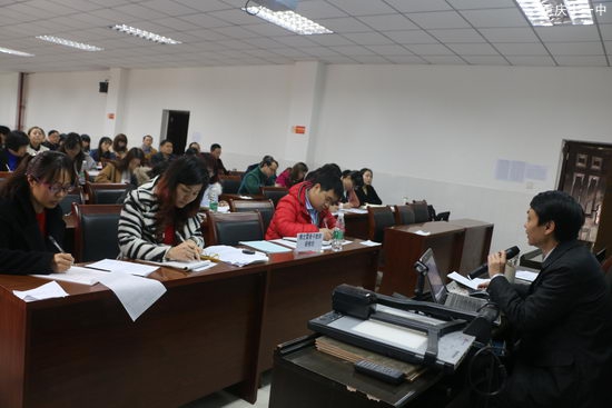 展示课后,区教研员傅文霄老师在讲座中针对2017高考考纲的变化做了非常详细的讲解,并建议二轮复习应巩固升格,研究学情注重实践,并优化指导,提出四个方向:加强实战,把握时间,能得尽得;装备调整,训练到位;聚焦实战,讲评到位;衔接管理,内化到位。在场所有语文老师都被傅老师深厚的教学研究、生动幽默的讲演方式所感染,并受益匪浅。