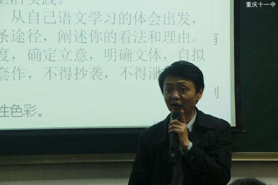 3月21日上午,在语文区教研员傅文霄老师的组织下,南岸区高三年级所有语文老师齐聚重庆十一中CBD校区,展开了一场关于高三作文教学的区教研活动,并聆听傅文霄老师关于2017高考考纲、语文二轮复习的讲解与指导,十一中刘东华老师也向到场的所有老师献上了一堂精彩生动的作文课。