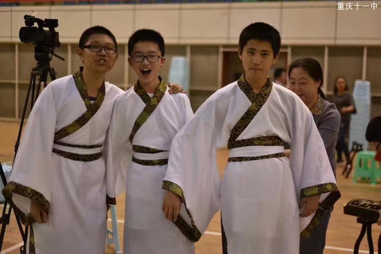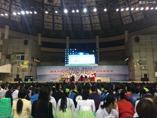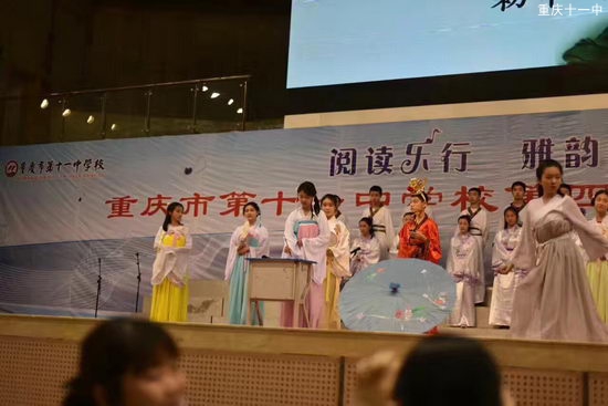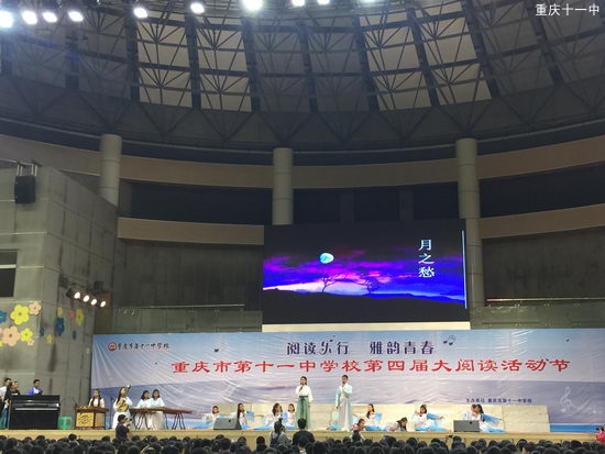 4月25日,重庆十一中初中部学生在体艺馆举行了“阅读乐行雅韵青春”诗词唱诵大赛。孩子们用美轮美奂的歌舞剧、激情饱满的歌唱致敬雅韵青春。