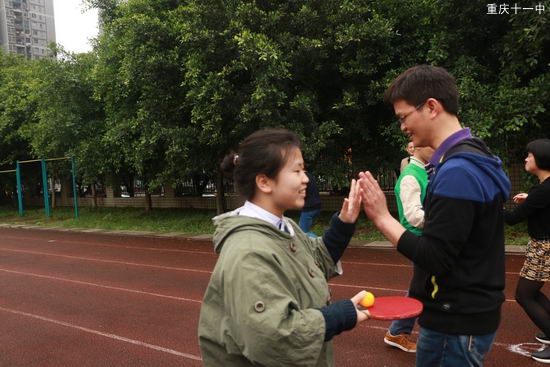 活动以班级为单位组队(其中国际班1班和24班组成一个国际联队),每班邀请2位班级科任老师参与,作为班级的龙头的班主任当然必须参加,并且为了给学生加油鼓劲,班主任们的主要任务是在中点处与每位参赛队员击掌。这样一来,既让师生有效地参与到趣味比赛中去,又让学生感受到来自老师的鼓励、信任与激情。