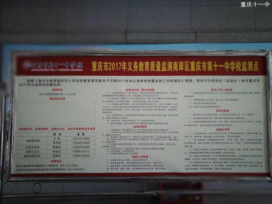 9月28日上午,重庆市“2017年义务教育质量监测”如期举行,学校顺利完成了“质量监测”工作。9月30日我校初2018级及时开展监测学生的信息补录,我校按时上报了学生补录信息,顺利完成了“义务教育质量监测”的学生信息补录工作。学校办公室、教务处、督评中心、信息中心、安全办公室、初2018级、初2019级、初2020级通力合作,齐心协力,质量监测工作取得了圆满成功。