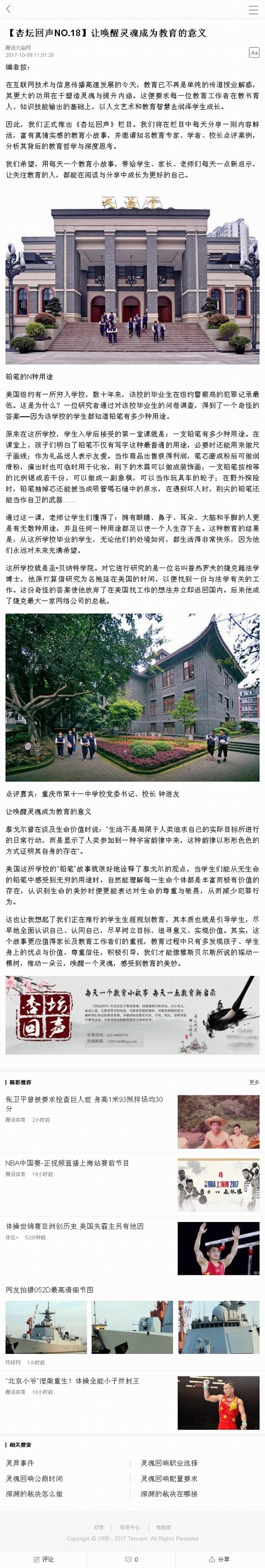 [腾讯大渝网]【杏坛回声NO.18】让唤醒灵魂成为教育的意义